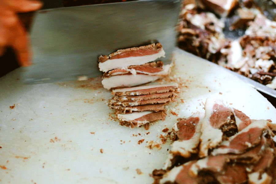 冬夜里,當他聽到深巷賣羊頭肉小販的吆喝聲,會立即從被窩里爬出來,然后等小販在門口昏暗的油燈下給他切好,再重新鉆進被窩,在枕上一片一片把羊頭肉放進嘴里,一解饞癮;