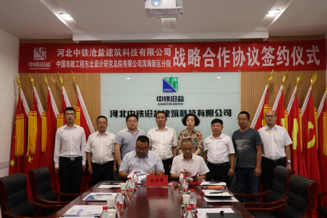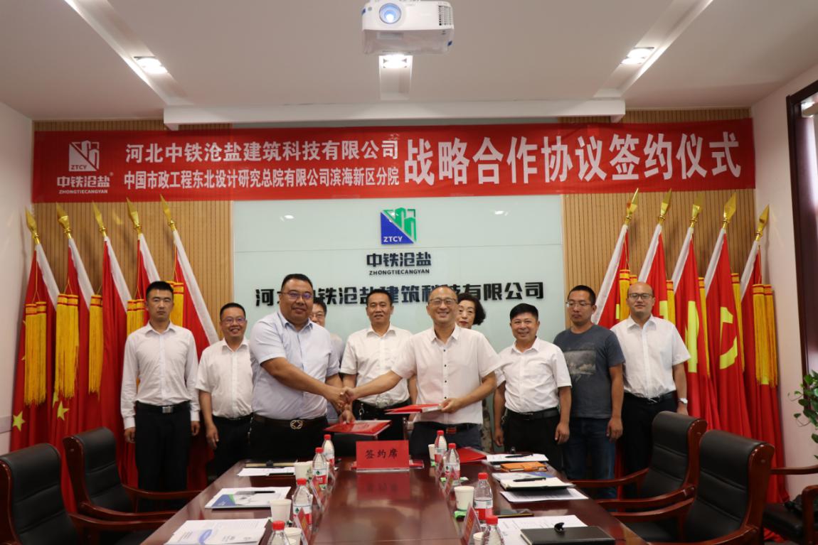 2020年7月9日,河北中鐵滄鹽建筑科技有限公司與中國市政工程東北設計研究總院有限公司濱海新區(qū)分院戰(zhàn)略合作簽約儀式成功舉行。此次活動特別邀請了滄州鹽業(yè)集團黨委書記、董事長劉建軍、工會主席李金營出席會議,中鐵滄鹽副董事長王峰偉,總經(jīng)理王志巖,東北設計研究院濱海分院院長紀云公,副院長孫洪艷等相關(guān)領導共同出席此次戰(zhàn)略合作簽約儀式。