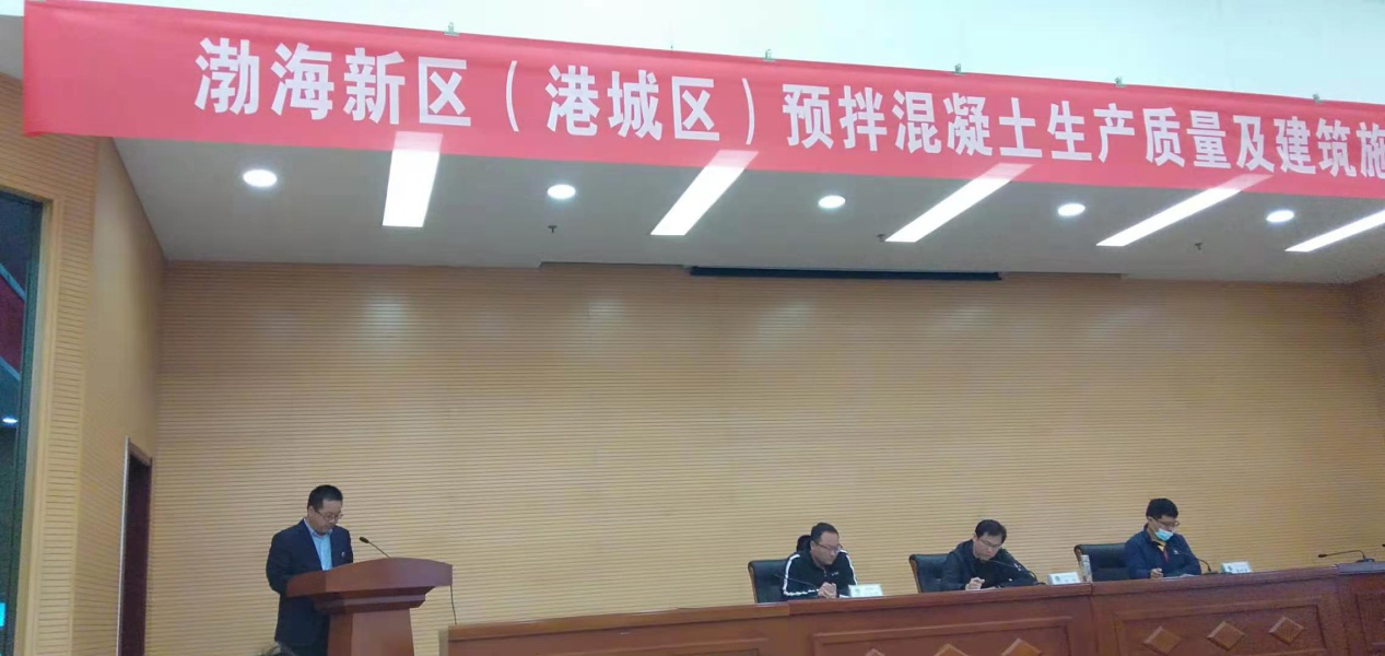 會議上,河北中鐵滄鹽建筑科技有限公司總經理王志巖作為渤海新區商砼供應商代表為提高商砼質量要求、確保混凝土質量達標,進行了表態發言,通過對我公司混凝土生產、過程管控、計量稱重、材料源頭控制、砼運輸等生產環節進行了闡述。同時承諾:渤海新區各混凝土生產企業必將嚴格遵守混凝土生產的各項法律法規,嚴格按照新區住建部門的要求落實,嚴把混凝土生產過程中的各個環節,保證混凝土產品質量,為渤海新區的高質量發展保駕護航!