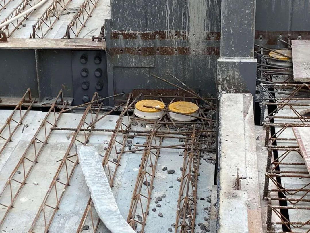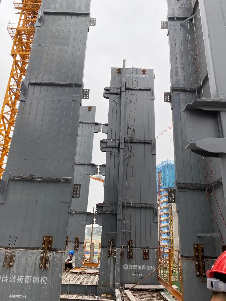 本篇由杭蕭鋼構供圖。2020年拍攝于施工現場,向分享單位表示感謝。以下來自杭蕭鋼構對鋼管混凝土束組合結構體系的介紹:鋼管混凝土束組合結構體系,是將鋼結構裝配式優勢和混凝土保溫節能效果有效的結合在一起。既起到快速建造、質量可控,又能降低鋼結構的建造成本。